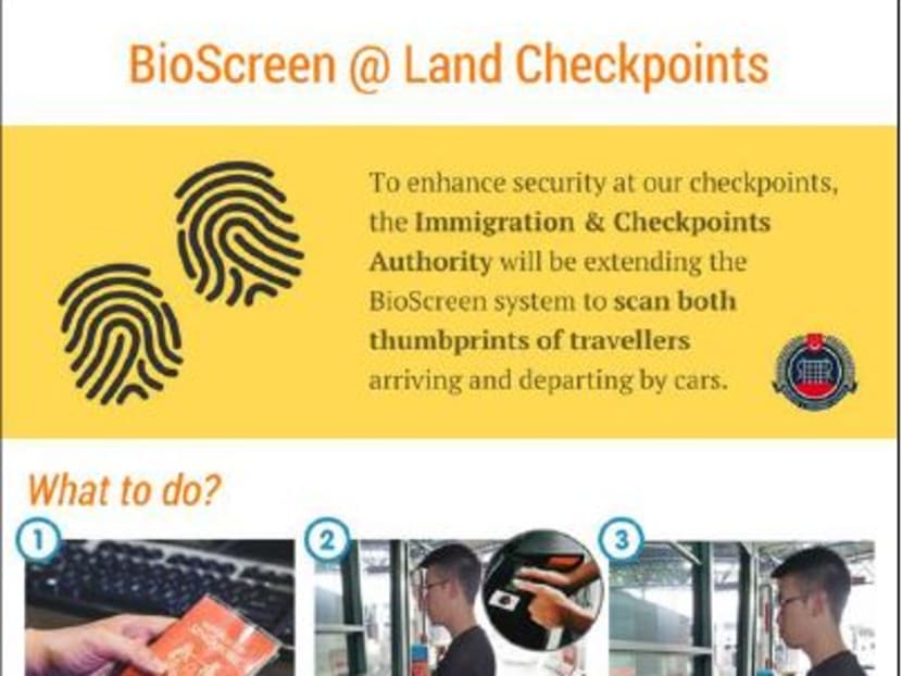 SINGAPORE — Travellers passing through Tuas and Woodlands checkpoints by car had to hop off and get their thumbprints scanned to clear immigration checks starting on Monday (Sept 25), becoming the latest group to start using the BioScreen system.
