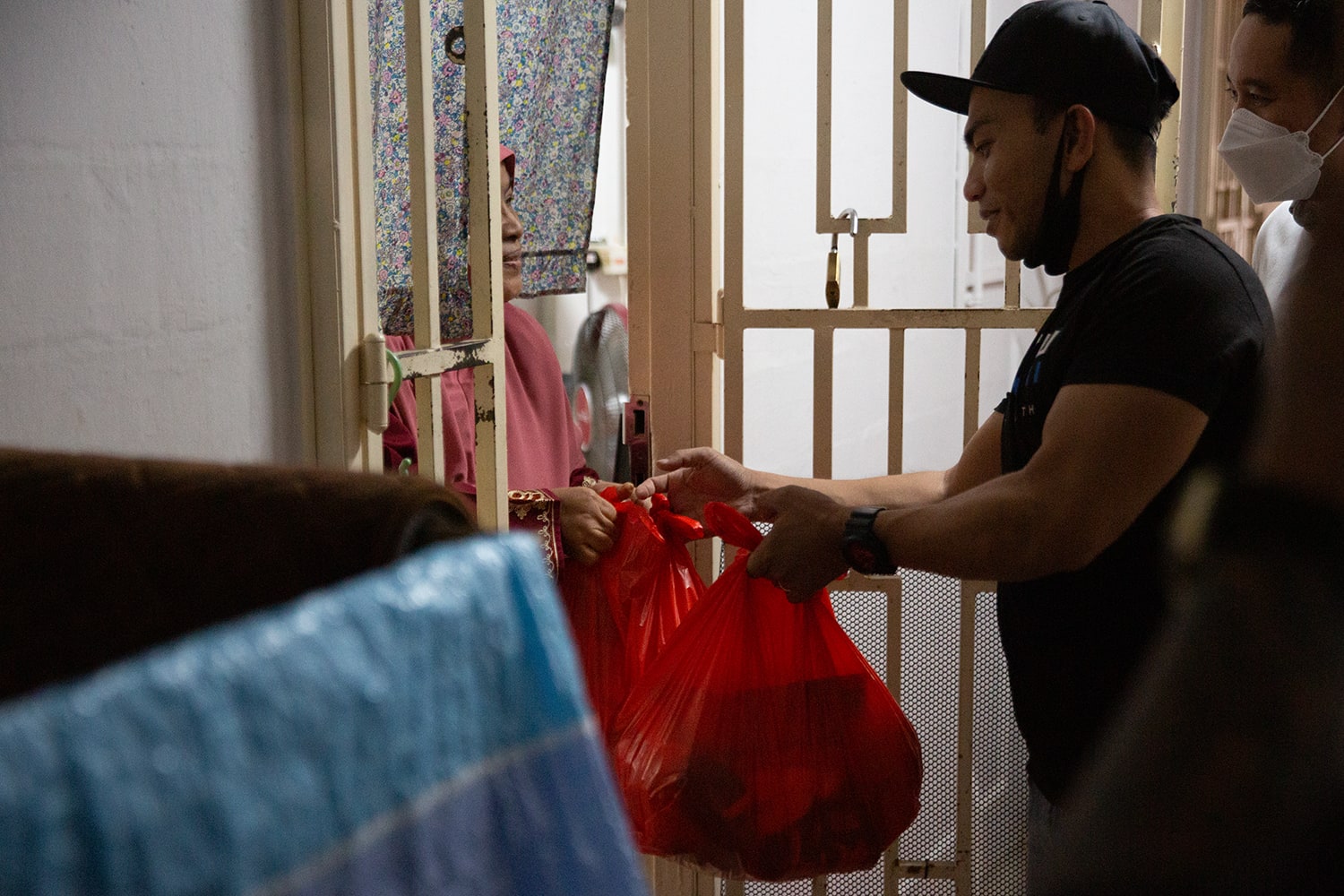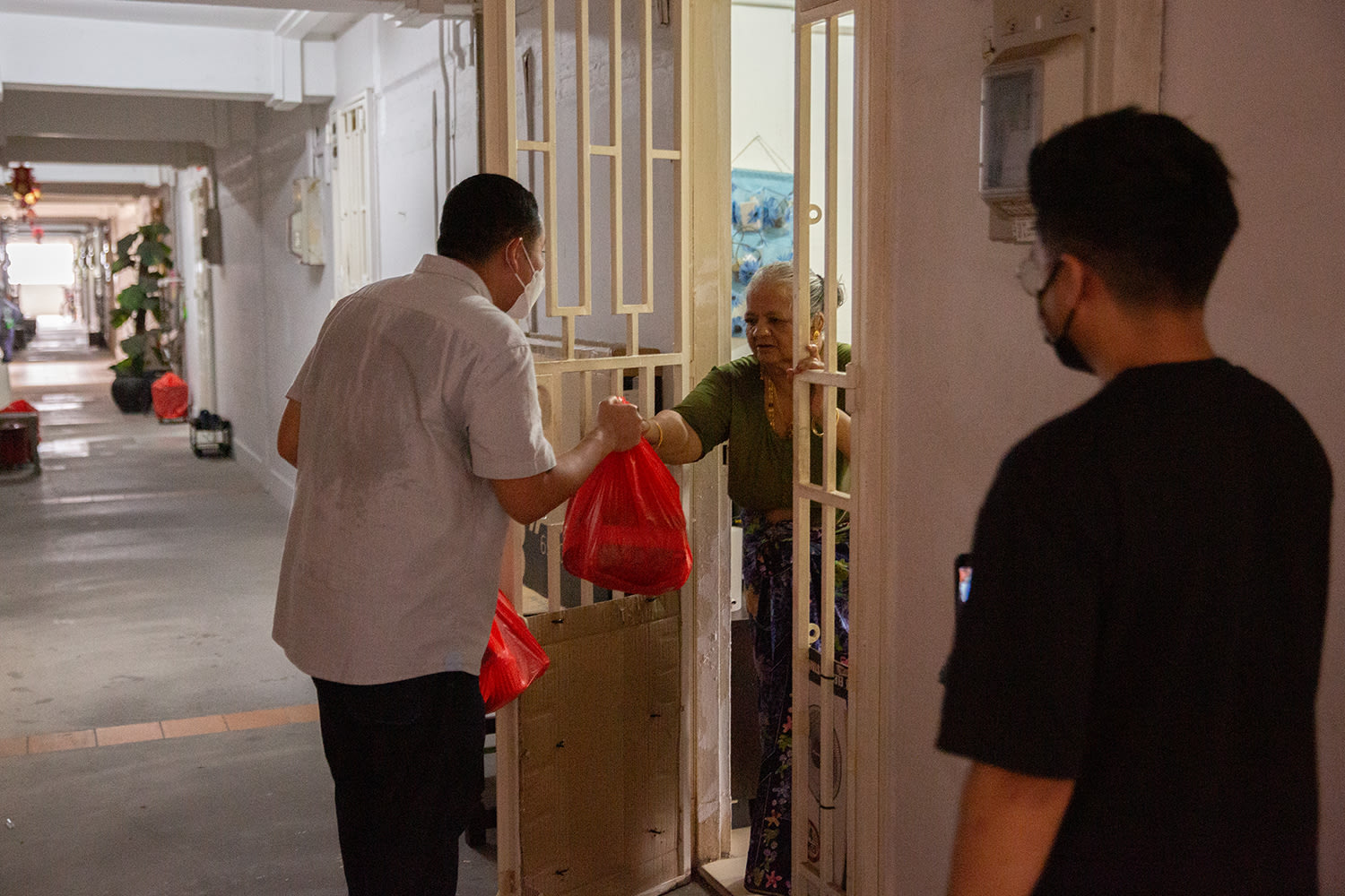 Along with other ex-convicts, the 36-year-old gathered near rental blocks along North Bridge Road on Sunday (April 17) afternoon, where they went door-to-door and handed out about 100 red plastic bags — stuffed with groceries and essential items — to residents.
