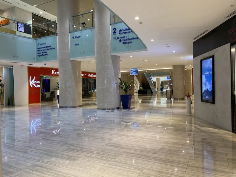 All was quiet along a row of eateries in Marina Square mall at around 4pm on Sept 28, 2022.