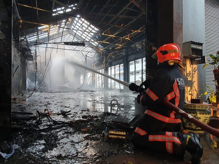 The fire was “well-alight” when firefighters arrived, SCDF said. Firefighters immediately deployed water jets around the premises to contain it and prevent it from spreading.
