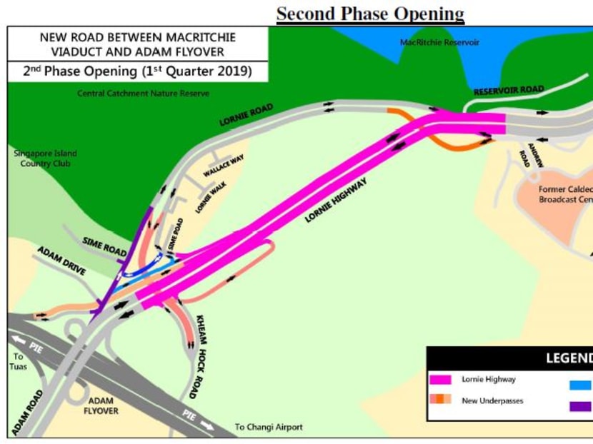 SINGAPORE — The Lornie Highway, a new dual four-lane road that connects MacRitchie Viaduct to Adam Flyover, will open progressively from the third quarter of 2018, about nine months behind schedule.