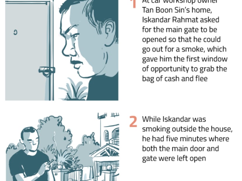 Iskandar, 36, knew that someone was coming to the house after overhearing car workshop owner Tan Boon Sin’s phone call, and had waited behind the door to “land a surprise attack”, charged Deputy Public Prosecutor (DPP) Prem Raj.