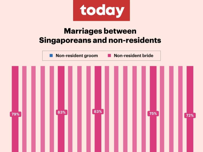 The number of Singaporean women who took non-resident grooms in the last two decades had jumped by 75 per cent, from 989 in 2000 to 1,727 in 2019, government data showed.