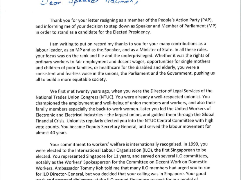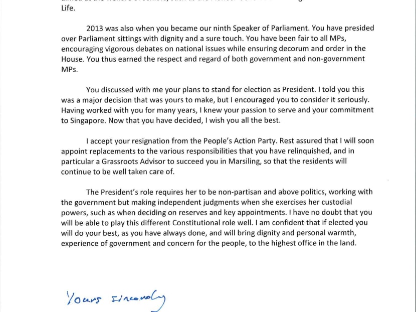 In full: PM Lee accepts Mdm Halimah Yacob's resignation from the PAP