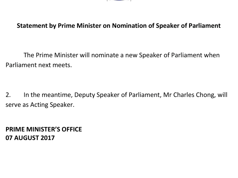 Prime Minister Lee Hsien Loong has accepted Madam Halimah Yacob's resignation from the People's Action Party. In a three-page letter, Mr Lee assured that he will soon appoint replacements to the posts she is relinquishing - due to her decision to run for President - as well as a grassroots advisor to look after Marsiling residents. A separate statement from the Prime Minister's Office also disclosed that Mr Charles Chong will serve as Acting Speaker of Parliament, following Madam Halimah's resignation as Speaker.