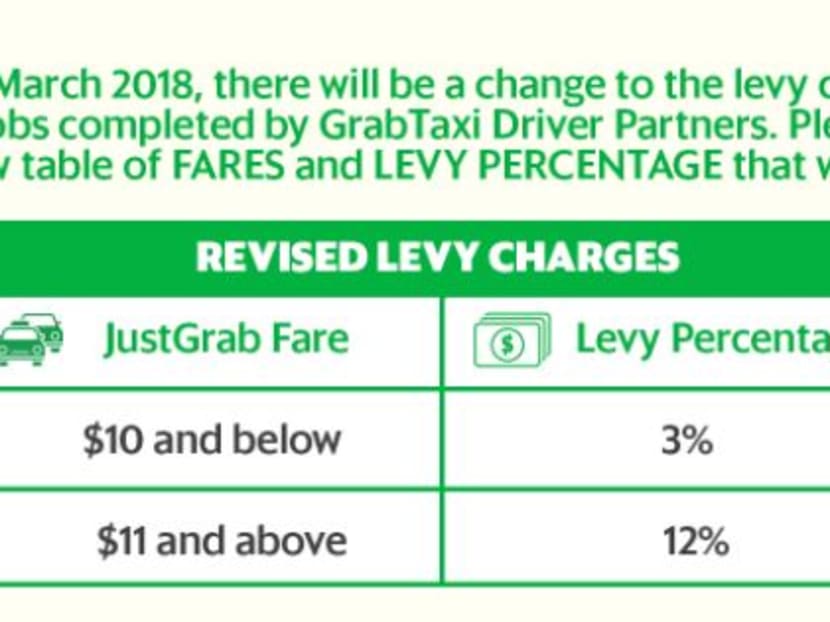 Grab drivers will not see any changes to their levy amounts, which is currently at 20 per cent.
