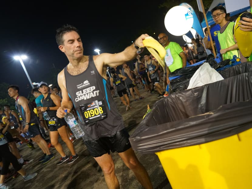 At the OSIM Sundown Marathon in May 2018, Green Nudge collected 700kg of banana peels which were sent to community gardens for use as compost. Photo: Heng Li Seng