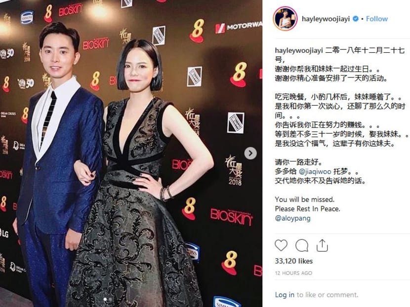 In an emotional farewell, Pang’s girlfriend, actress Jayley Woo, posted a series of images on her Instagram stories after his passing.