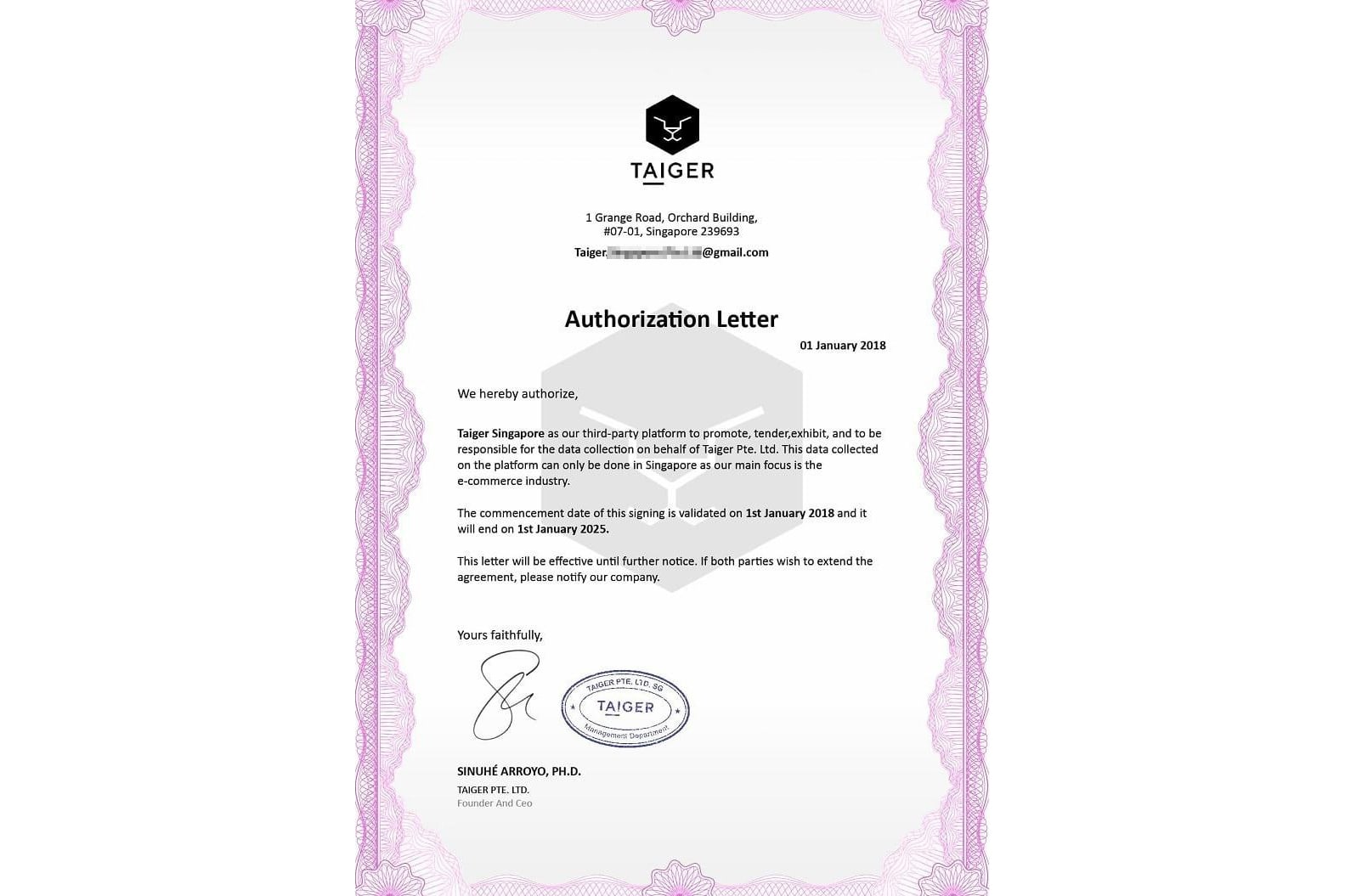First, he showed me an "authorisation letter" that stated that he was acting on behalf of Taiger Pte Ltd. From here, I started noticing a quick series of red flags.