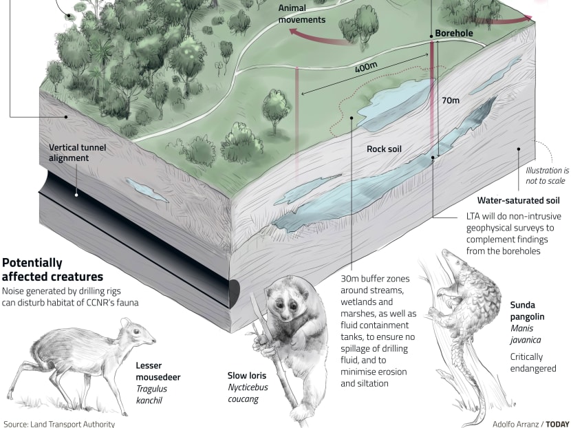 The mousedeer, slow loris and critically endangered Sunda pangolin have distinct home ranges, and movement away from the noise or human activities “may potentially bring such fauna into territorial conflict such as increased competition for food and shelter, particularly in a highly fragmented habitat like that in the CCNR”, stated the Environmental Impact Assessment (Phase One) gazetted by the LTA last Friday (Feb 5).