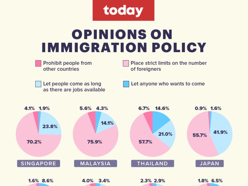 But they were less likely to feel that immigration would lead to social conflict compared to Hongkongers (69.8 per cent), Malaysians (60.8 per cent) and Taiwanese (62.7 per cent)