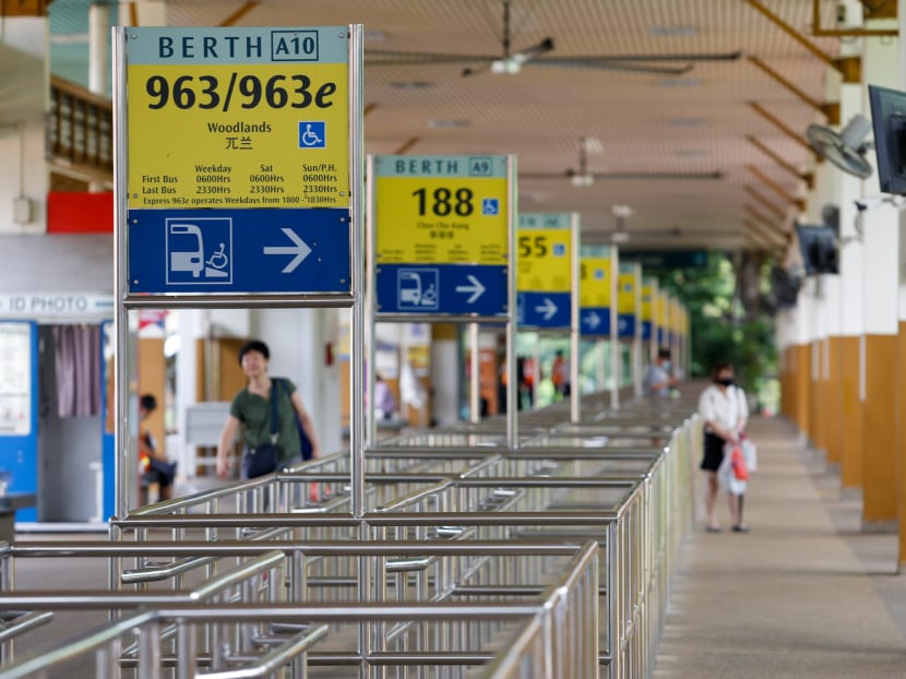 The bus interchange at HarbourFront saw significantly fewer commuters on April 7, 2020. Photo: Yong Jun Yuan/TODAY
