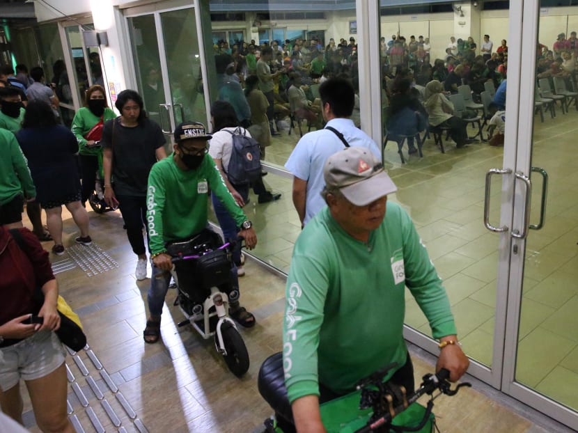 SINGAPORE — More than 300 food-delivery riders and retailers, the largest turnout so far, showed up at a meet-the-people session on Tuesday (Nov 12). Many of them had family in tow, but all of them left without getting what they had hoped for — an indication that the Government would consider reversing the ban of e-scooters from footpaths.