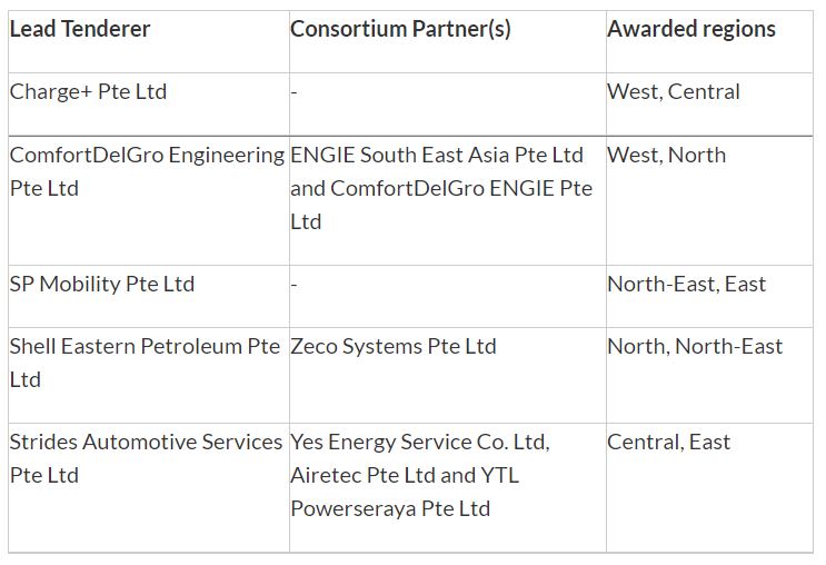 “To strengthen the resiliency of the EV charging network, each region has been awarded to two tenderers, and each tenderer has been awarded two regions," said LTA.