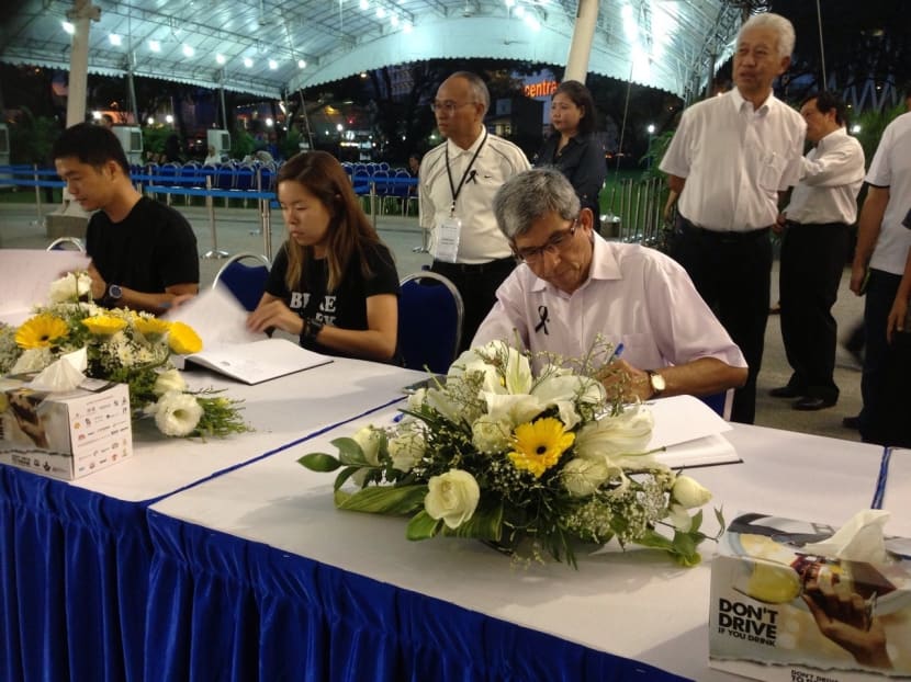 9.20pm: Deputy Prime Minister and Minister for Finance Tharman Shanmugaratnam is at the Jurong GRC tribute site. He pens his tributes to Mr Lee in a book there.