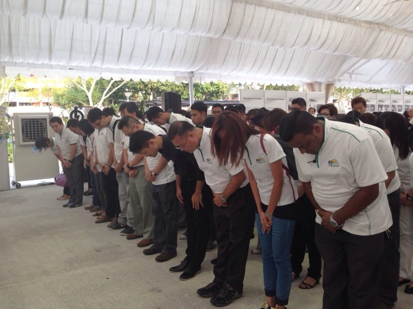 6pm: Members from the Tampines Town Council have arrived. As at 5.45pm, some 3,500 people have visited the Tampines tribute centre. Together with Member of Parliament for Tampines GRC Baey Yam Keng, the Town Council members bowed three times as a mark of respect to Mr Lee Kuan Yew.