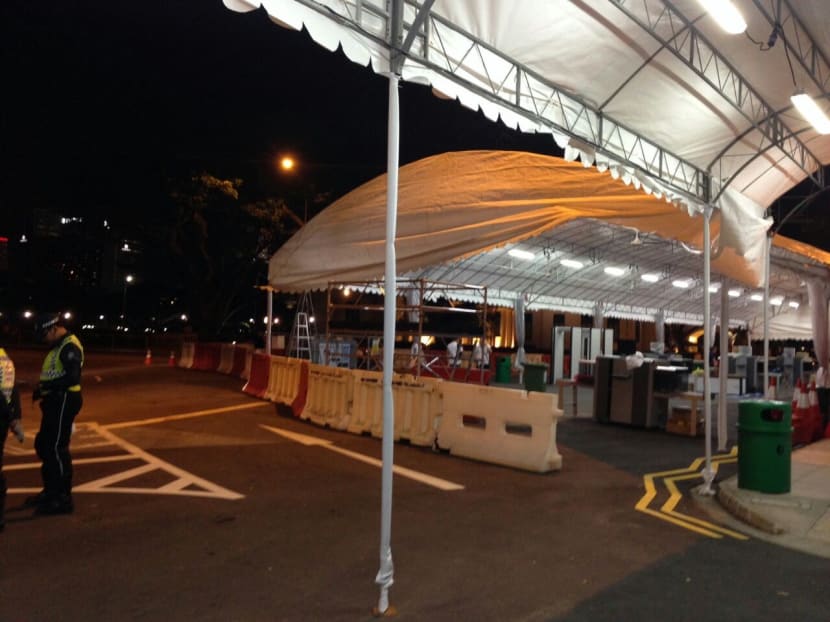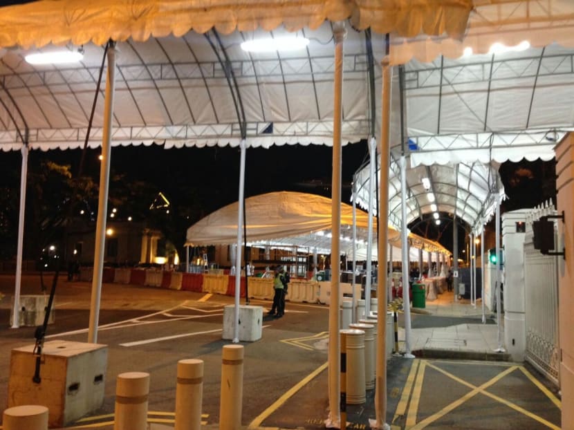 9.10pm: Barricades for queues and tentages for people to go through security scans have been set up at Parliament House, in preparation for visits by members of the public. Tentages have also been spotted along Singapore River. Mr Lee Kuan Yew will lie in state at Parliament House from tomorrow (March 25) to Saturday from 10am to 8pm for members of the public to pay their last respects.