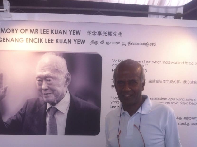 Construction worker Mr Ramasamy Mani, who dropped by the tribute centre at Jurong East GRC says: "Mr Lee was a father to Singapore and a teacher to many leaders all over the world. His life is a lesson for all leaders.