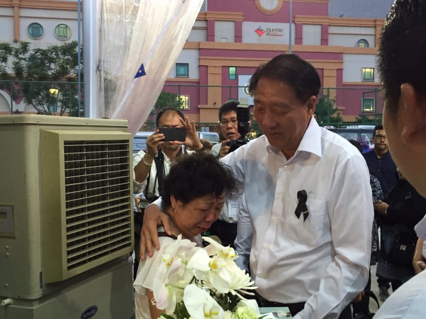 7.10pm: Ministers are seen at various tribute sites. Deputy Prime Minister Teo Chee Hean arrives at the Pasir-Punggol community tribute site, joined by Pasir Ris-Punggol GRC MPs Penny Low, Gan Thiam Poh and Zainal Sapari. Mr Teo was later seen comforting a sobbing resident, who was clutching a large bouquet of white flowers. Asked what he said to residents who were upset, an emotional Mr Teo said he told them that "we should remember him for what he's done for us. But also to live up to what he did for us - to continue to build Singapore for the future".