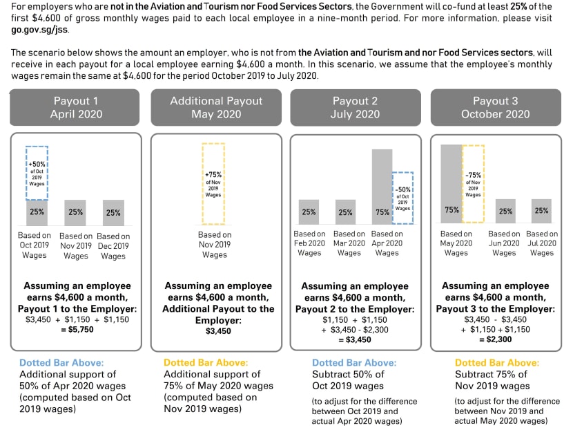 The subsidies will cover 75 per cent of the first S$4,600 of each local employee’s salary in May.