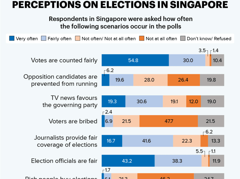 Respondents here were also asked about how they perceived elections in Singapore, spanning topics such as the fairness of the elections, media coverage and the treatment of voters.