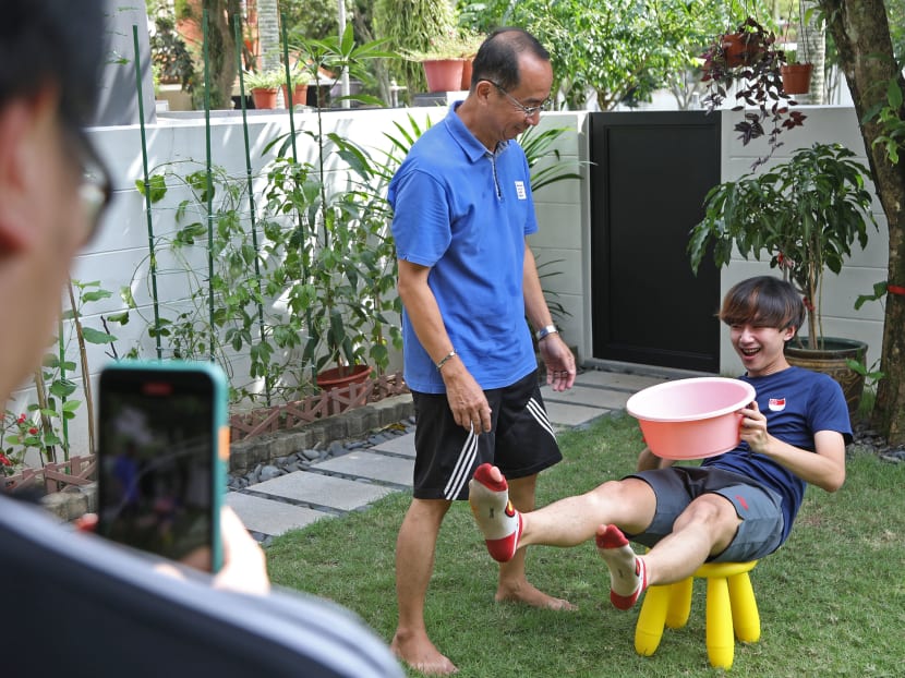 During the circuit breaker in May here when people had to stay home due to Covid-19, national taekwondo athlete Ng Ming Wei, 25, and his 52-year-old father, retiree Cedric Ng, published a video of themselves doing something comical.