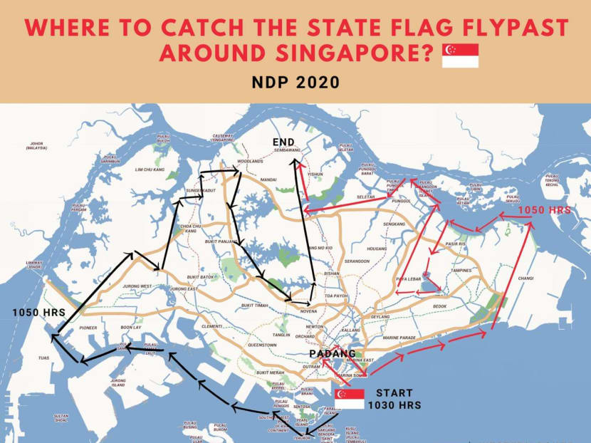 The new routes for the state flag flypast are among several changes made to this year’s NDP in light of the Covid-19 pandemic. Instead of a single show, this year’s NDP will feature a morning segment at the Padang followed by an evening performance at The Star Performing Arts Centre at Buona Vista.