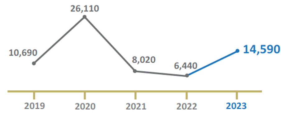 The figure in 2023 is similar to pre-pandemic levels, with the average number of retrenchments for 2015 to 2019 at 14,180.