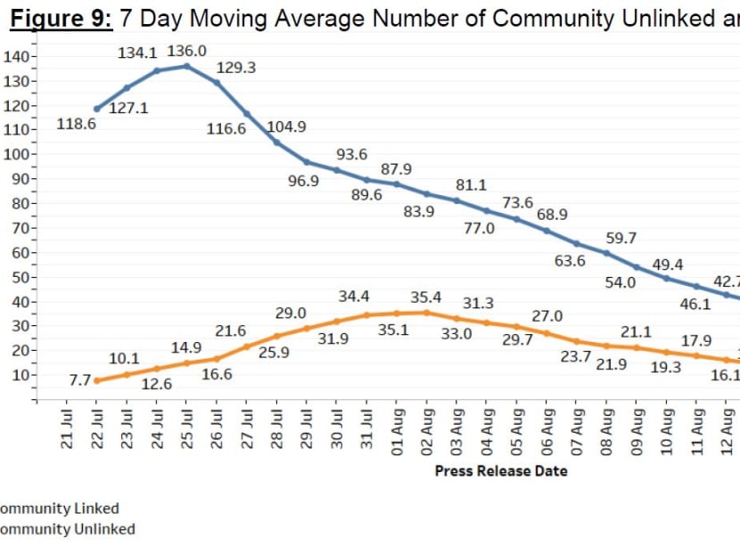 The seven-day moving average number of all linked community cases and all unlinked community cases are 31.7 and 13.4 respectively.