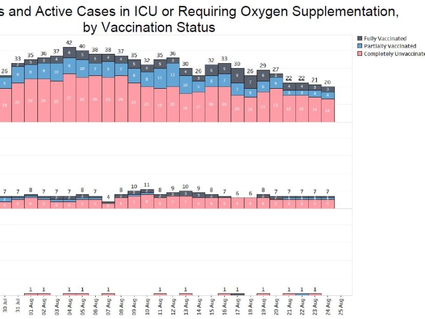 Data from MOH showed that the number of patients who are under intensive care has remained constant at seven since Aug 20.