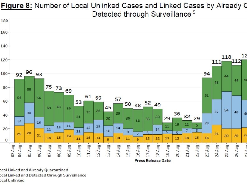 The number of cases with no known links in the community has almost doubled from 105 in the week before to 198 in the past week.