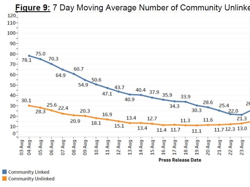 The seven-day moving average number of all linked community cases and all unlinked community cases are 81.9 and 28.3 respectively.