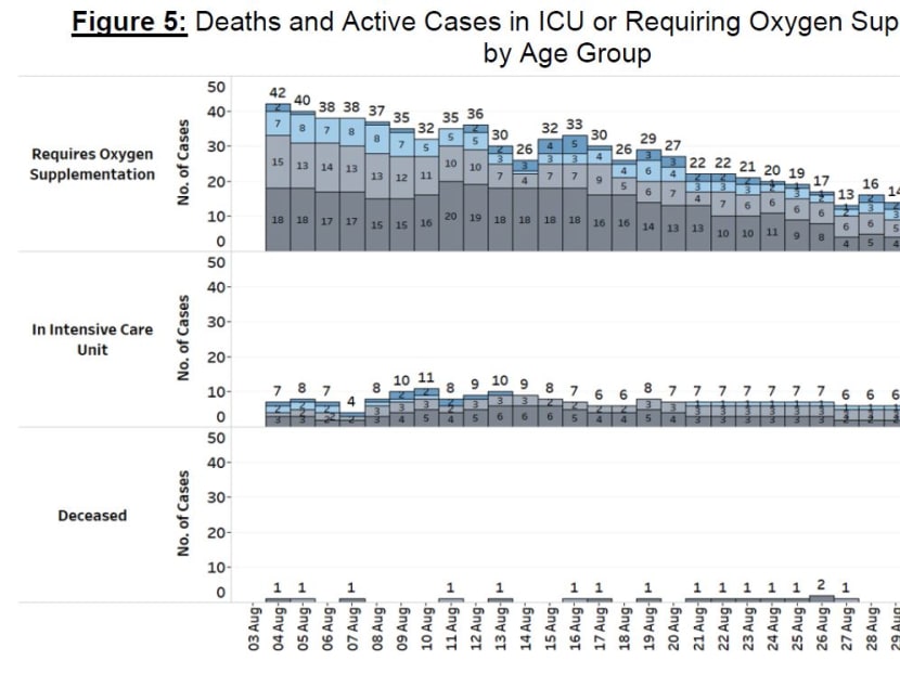 Data from MOH showed that the number of patients under intensive care has remained constant at five since Aug 30.
