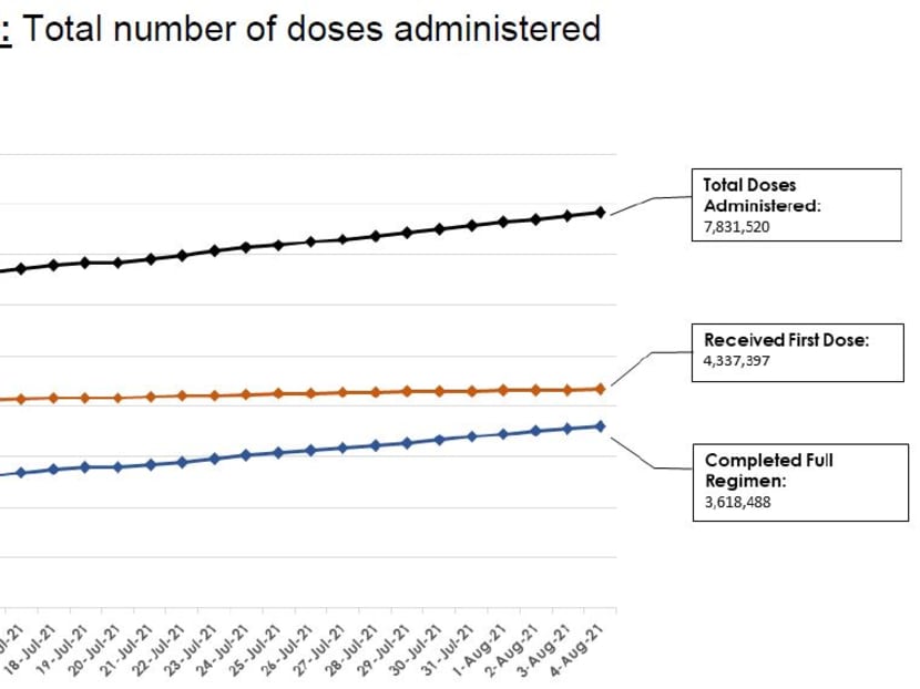 - As of Aug 4, 65 per cent of the population have been fully vaccinated