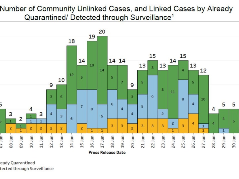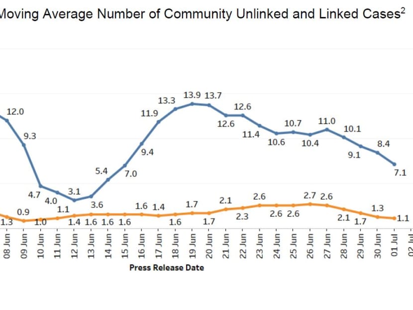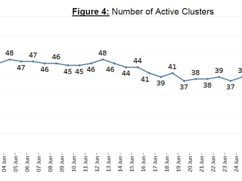 SINGAPORE — Four Covid-19 clusters were closed on Thursday (July 1), the Ministry of Health (MOH) said, as the seven-day moving average number of infections in the community that are linked to confirmed cases or not continues to trend downwards.