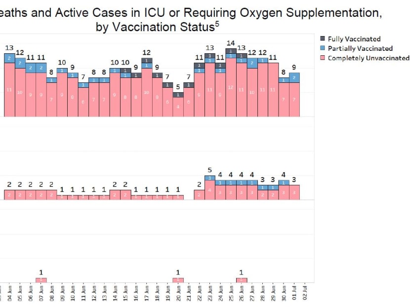 “Over the last 28 days, 24 local cases required oxygen supplementation, were admitted to intensive care units or have died. Twenty-one are unvaccinated, three are partially vaccinated and none is fully vaccinated.”