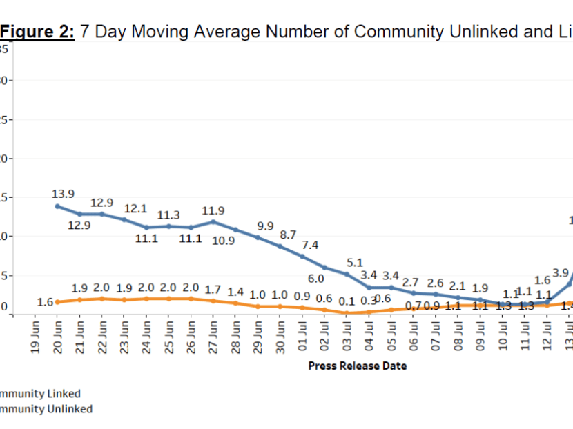 The seven-day moving average number of all linked community cases and all unlinked community cases are 31.0 and 3.1 respectively.