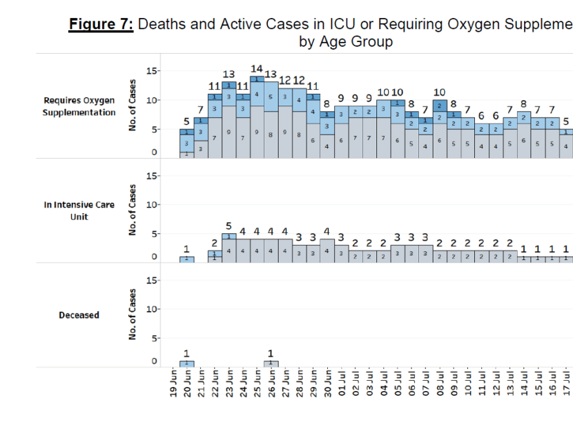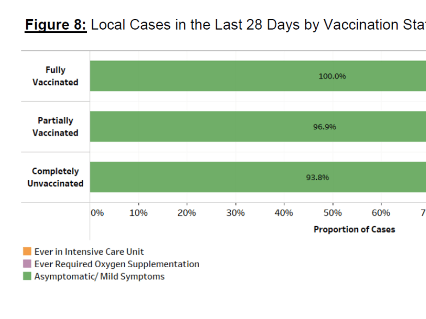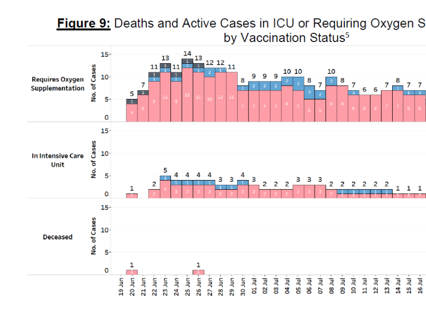 Over the last 28 days, 14 patients needed oxygen support, were put under intensive care or died. Ten were notvaccinated, four were partially vaccinated and none were fully vaccinated.