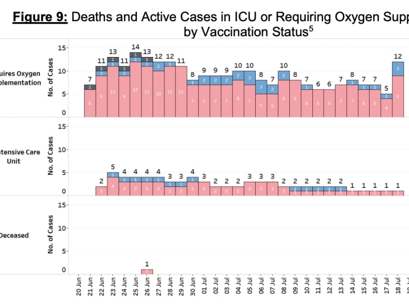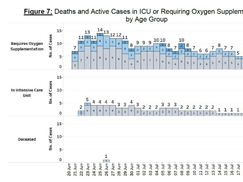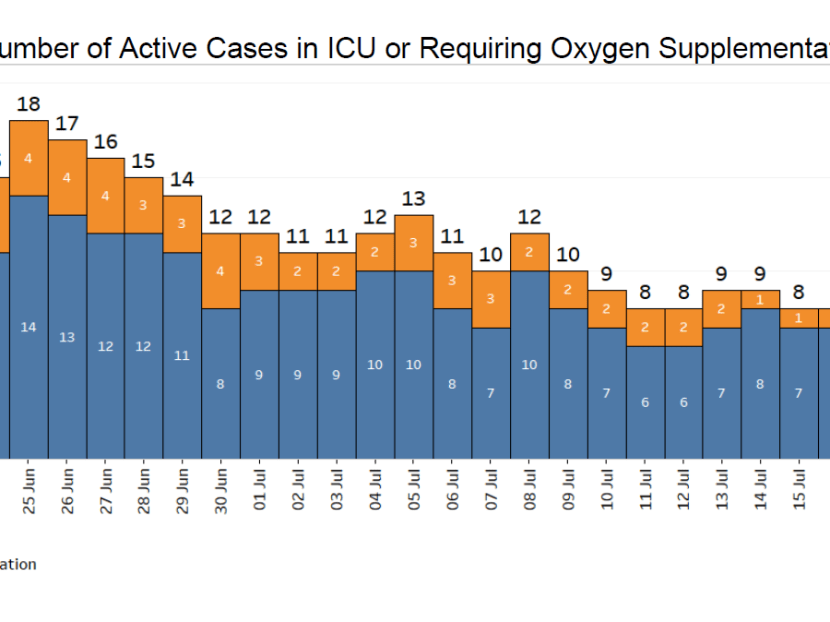 CLARIFICATION: An earlier version of this article stated that 12 patients require supplemental oxygen. MOH has corrected the figure to five. It was also stated that over the last 28 days, 17 local cases required supplemental oxygen, were admitted to an intensive care unit or died. MOH has corrected the figure to 11.