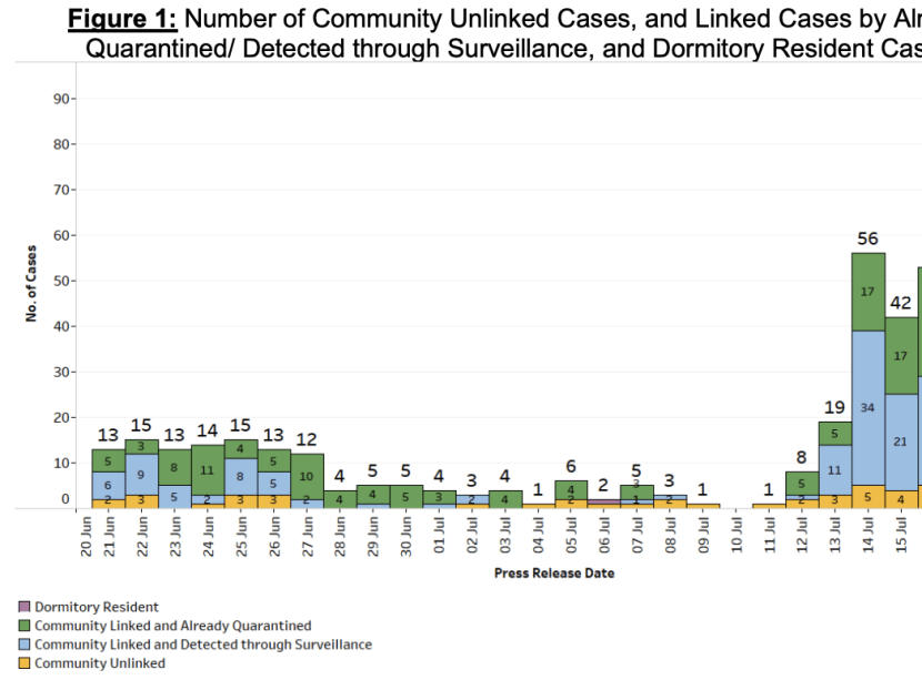 SINGAPORE — Singapore on Sunday (July 18) recorded 88 new locally transmitted cases of Covid-19, 42 of which are linked to the Jurong Fishery Port cluster, while 25 have been traced to the growing cluster at karaoke lounges and clubs.