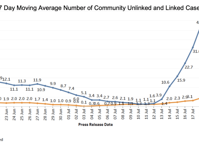 The number of cases in the community with no links to confirmed infections has also increased from eight in the week before to 31 in the past week.