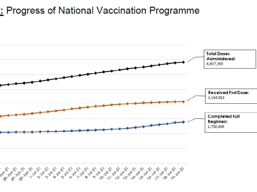 As of July 19, about 6.84 million doses of Covid-19 vaccines have been administered under the national vaccination programme, covering 4,16 million individuals.