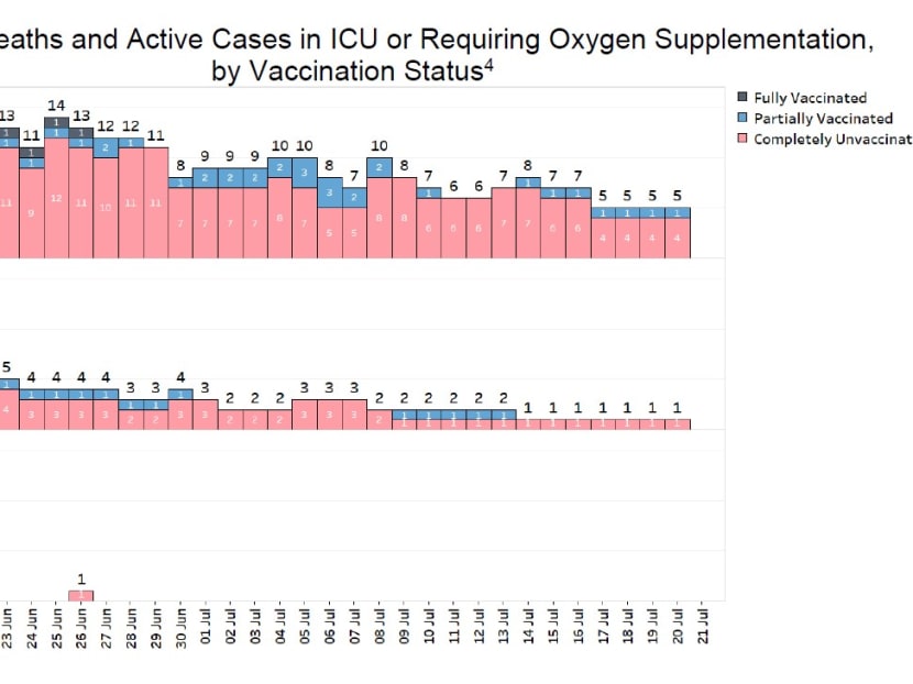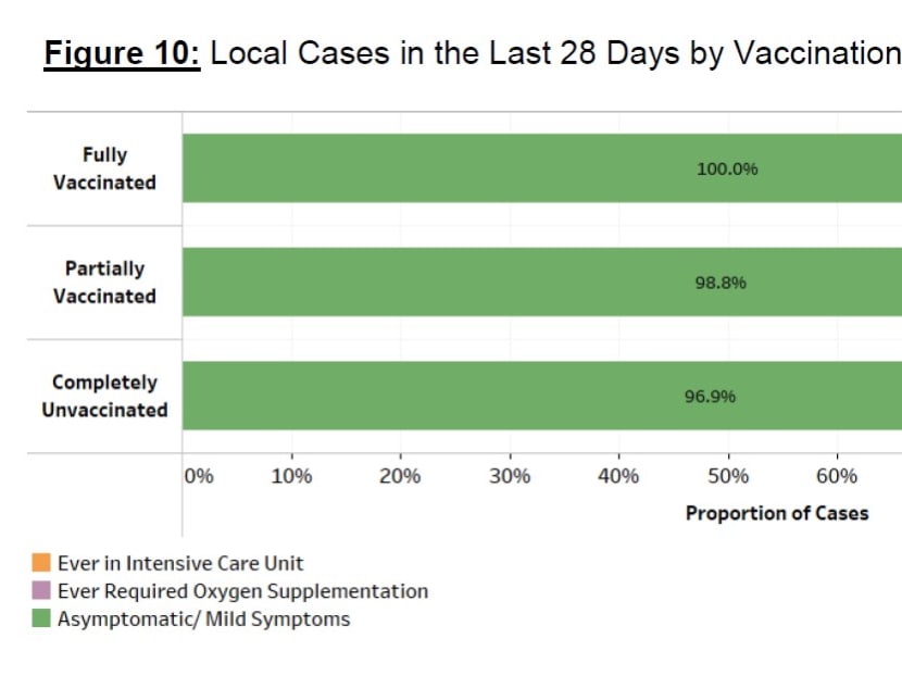 Over the last 28 days, 10 patients required oxygen support, were admitted to ICU or died. Seven were not vaccinated, three were partially vaccinated and none were fully vaccinated.