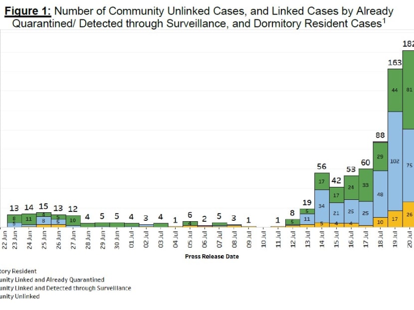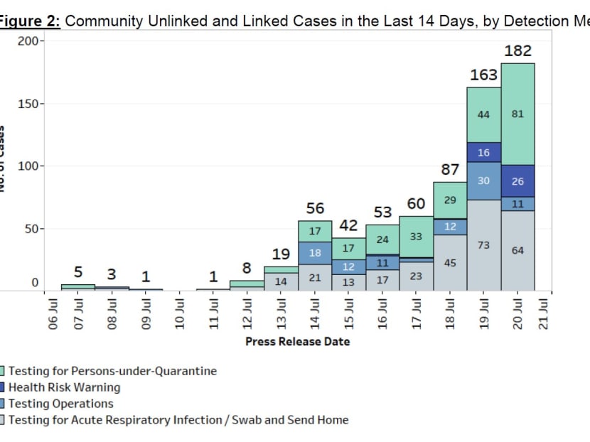 Overall, the number of new cases in the community has shot up from 37 cases in the week before to 643 cases in the past week.