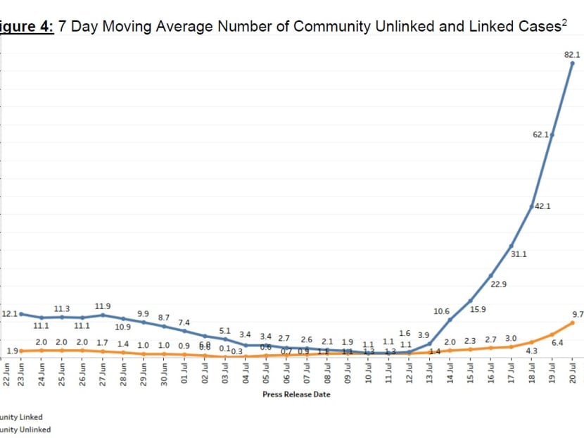 The seven-day moving average number of all linked community cases and all unlinked community cases are 82.1 and 9.7 respectively.