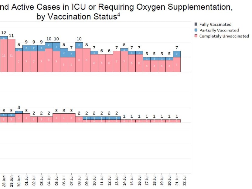 “Over the last 28 days, eight local cases required oxygen supplementation, were admitted to intensive care units or died. Six are unvaccinated, two are partially vaccinated and none are fully vaccinated.”