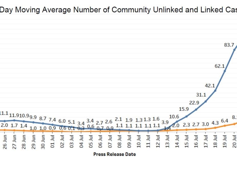 “The seven-day moving average number of all linked community cases and all unlinked community cases are 97.7 and 11.7 respectively,” MOH said.