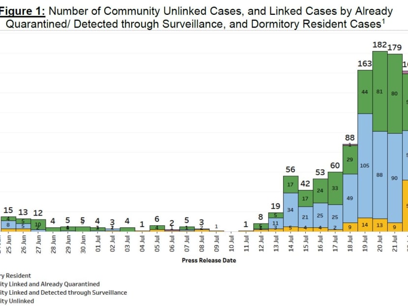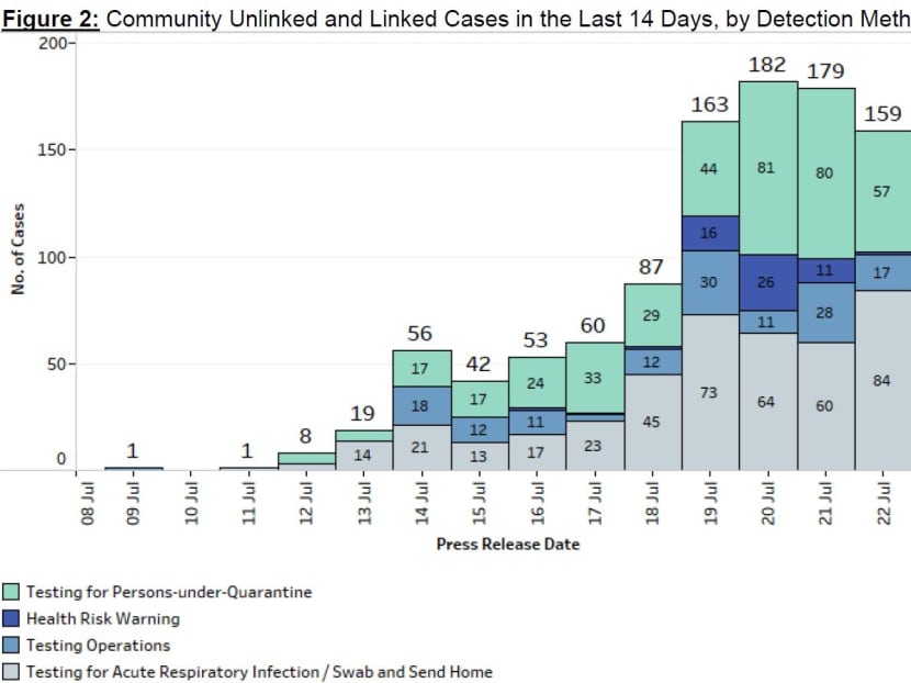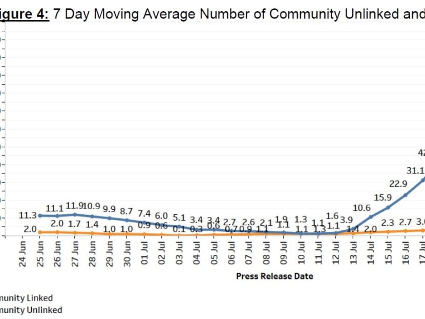 The number of unlinked cases in the community has also gone up from 16 in the week before to 105 in the past week.