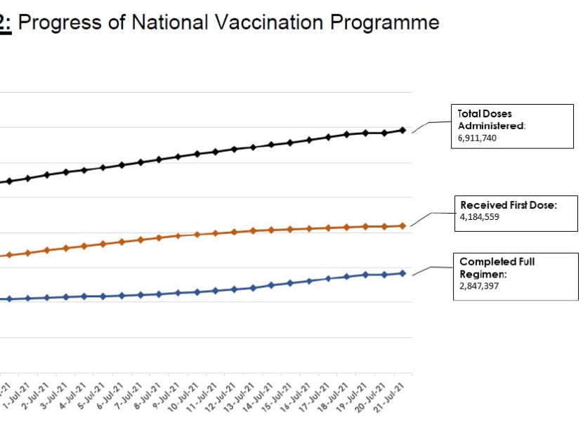 About 6.91 million doses of Covid-19 vaccines had been given to more than 4.18 million people as of Wednesday, MOH said.
