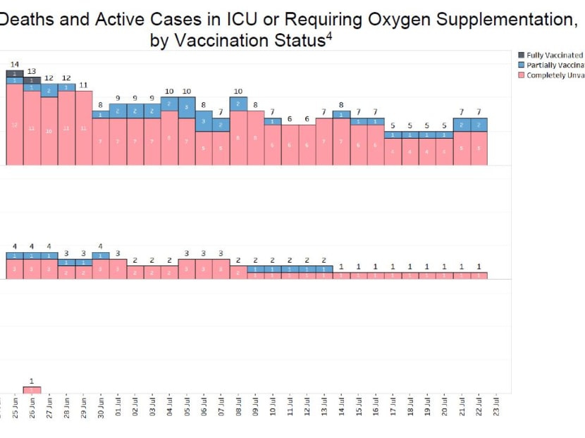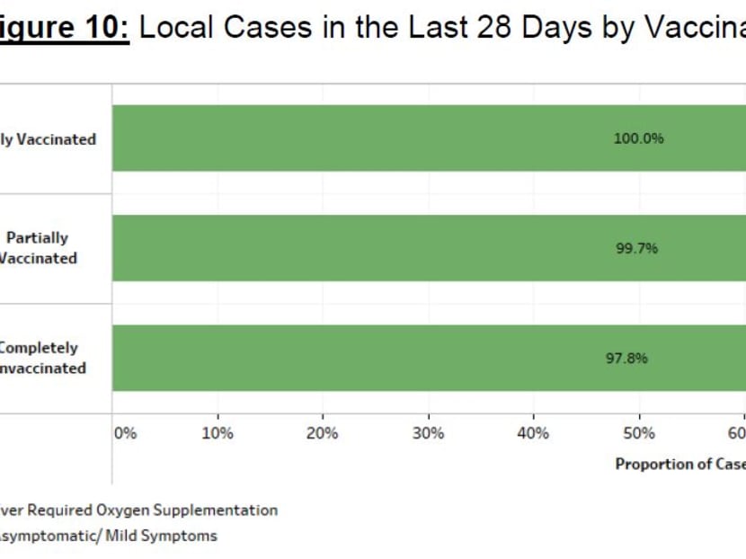 “Over the last 28 days, seven local cases required oxygen supplementation, were admitted to intensive care units or died. Six were unvaccinated, one was partially vaccinated and none were fully vaccinated.”